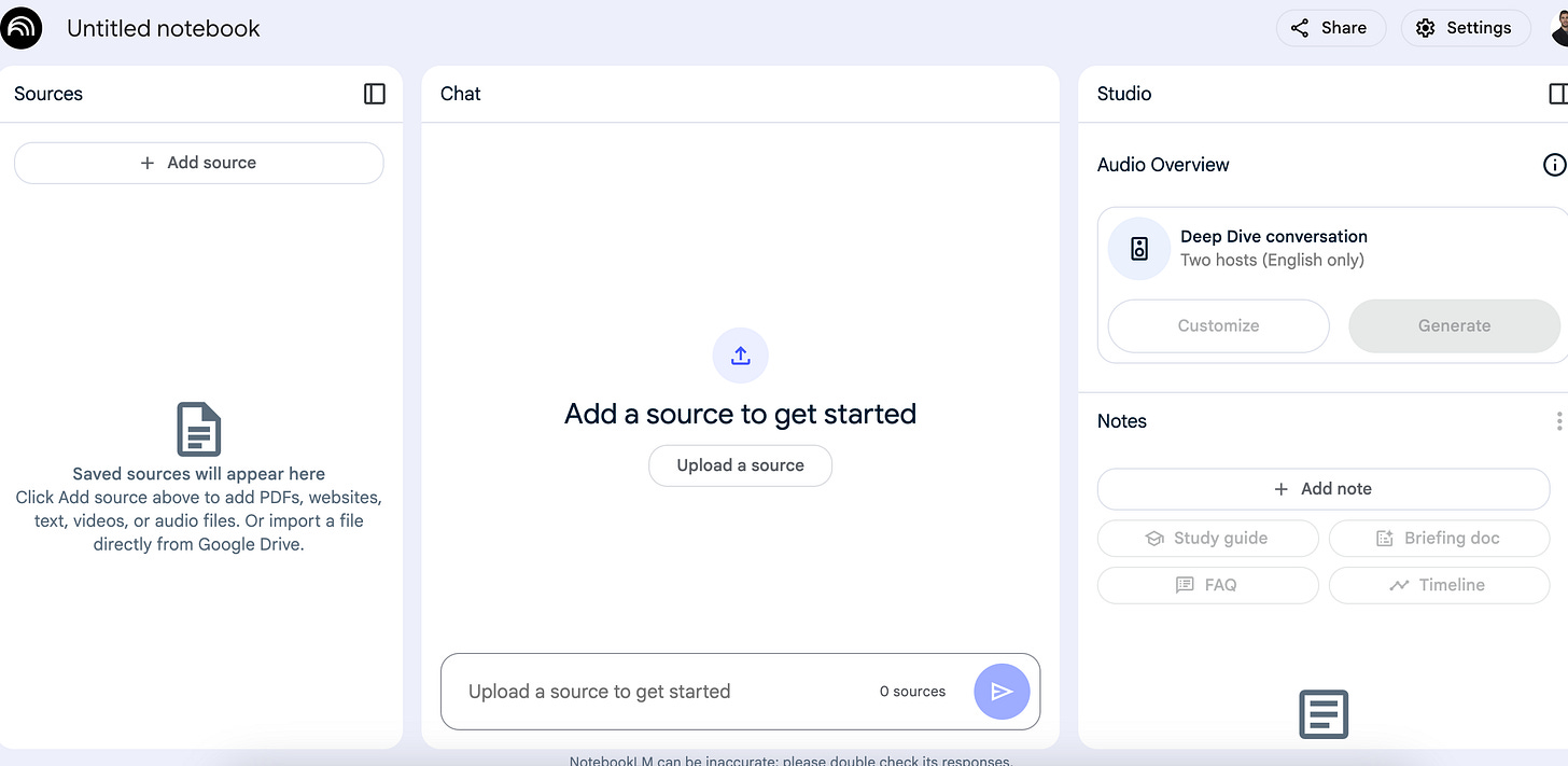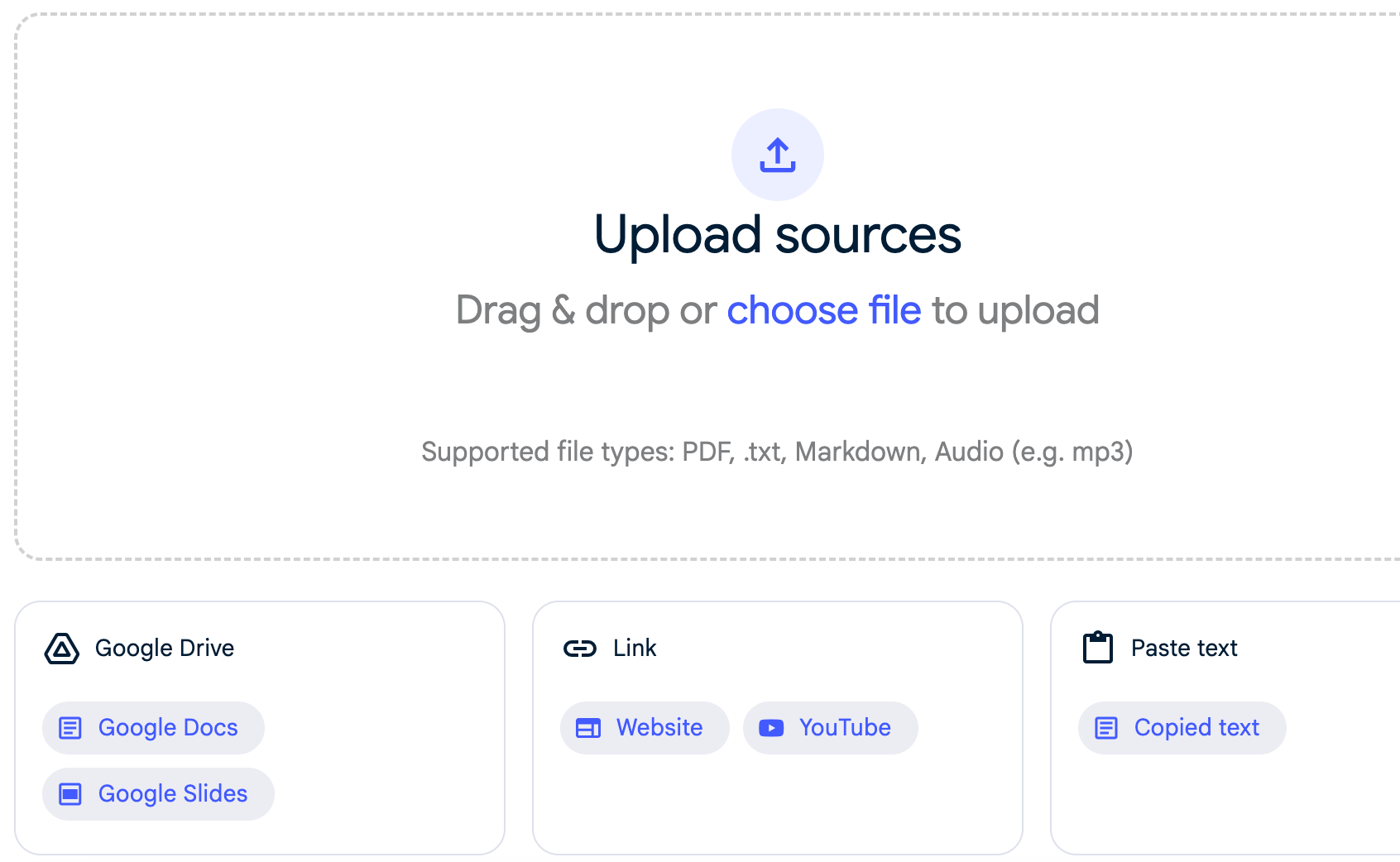 Once you’ve added 1 or more sources (you can add up to 20 per notebook) you can then do a ton of useful stuff like: